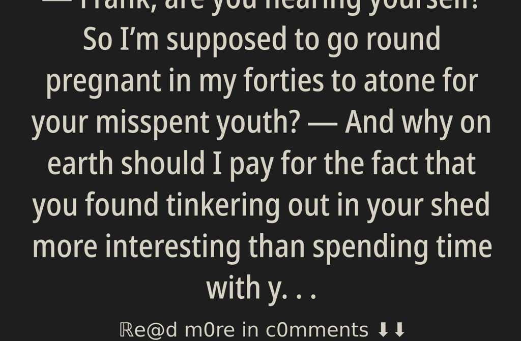 Frank, are you hearing yourself? So Im supposed to go round pregnant in my forties to atone for your misspent youth?