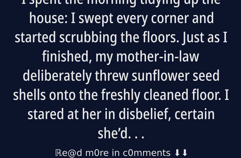 I spent the morning tidying up the house: I swept every corner and started scrubbing the floors. Just as I finished, my mother-in-law deliberately threw sunflower seed shells onto the freshly cleaned floor. I stared at her in disbelief, certain shed done it on purpose.