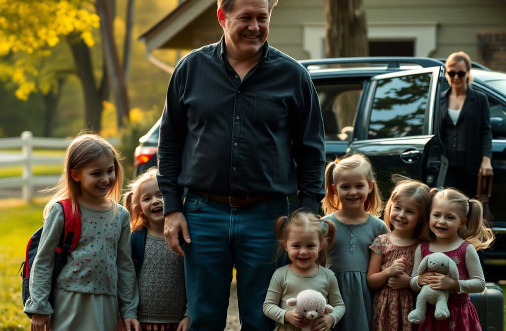 James stood frozen, the sound of cereal splashing into milk suddenly deafening. Five small faces peered around the corner, confused and expectant.