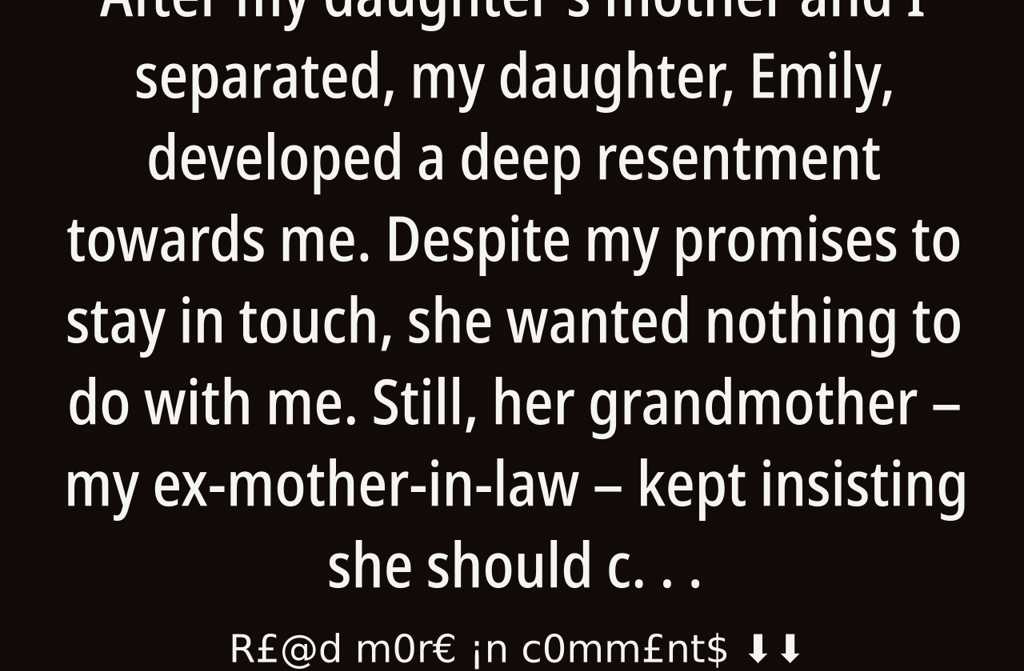 After my daughter’s mother and I separated, my daughter, Emily, developed a deep resentment towards me. Despite my promises to stay in touch, she wanted nothing to do with me. Still, her grandmother my ex-mother-in-law kept insisting she should call. She reminded Emily that I was still her father and that she ought to keep contact. I know it must have seemed odd to Emily, especially as her own mum refused to speak to me. Nevertheless, to avoid upsetting her mum, Emily agreed to meet with me every now and then.