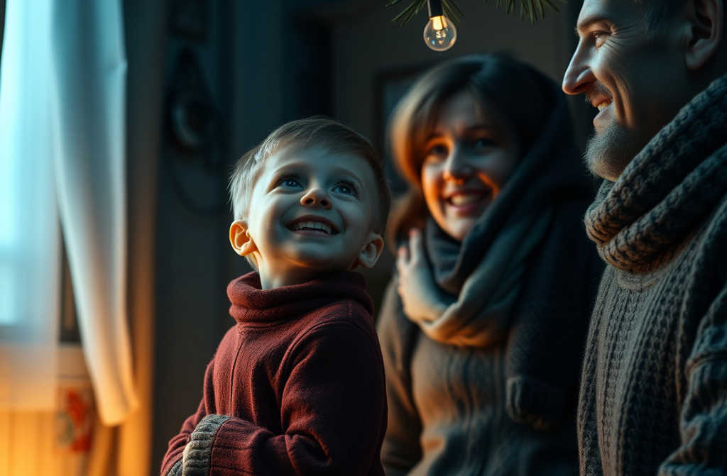 He took me by hand and led me in. The little flat was furnished humbly, almost bare. On the coffee table by the bed stood a single pine branch in a large jar, decked with miniature baubles and a tiny string of coloured lights.