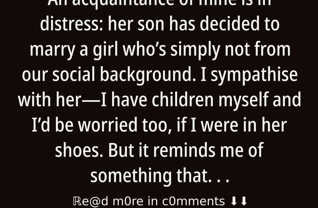 An acquaintance of mine is in distress: her son has decided to marry a girl whos simply not from our social background. I sympathise with herI have children myself and Id be worried too, if I were in her shoes.