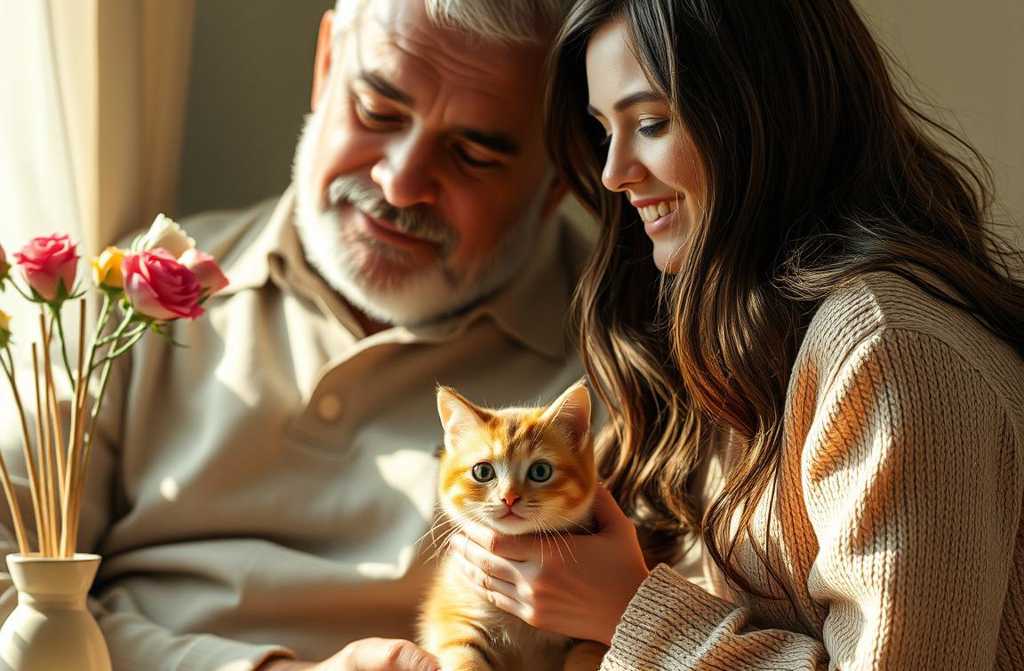 Around lunchtime, he heard keys in the door. The kitten dashed to greet the visitor, mewing happily. Then a soft voice cooed: