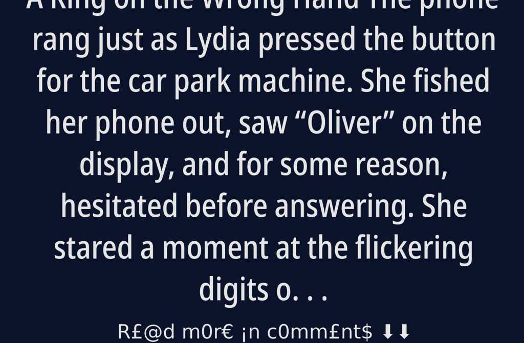The phone rang just as Lydia pressed the button for the car park machine. She fished her phone out, saw Oliver on the display, and for some reason, hesitated before answering. She stared a moment at the flickering digits on the meter, then finally picked up.