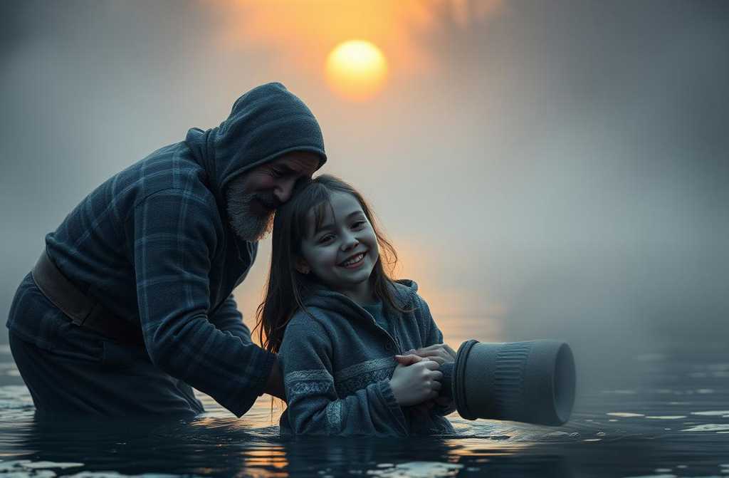 Pulling Mabel onto the bank, Victor, despite his own exhaustion, acted without hesitation. His calloused hands, accustomed to hard labour, worked quicklypressing, compressing, performing mouthtomouth breaths. Murky river water surged from her lungs, and she coughed a harsh, rattling cough. A weak but steady breathing began. He needed to warm her. He gathered the dying embers of an old campfire, built a makeshift bed of flat river stones, and layered it with a thick blanket of soft pine needles. He gently laid Mabel on this improvised mattress and covered her with his only jacket, still smelling of smoke and sweat. He gathered the scattered belongings, struggled to pull the soaked clothes over her stiffened body, and settled by the new fire, extending his trembling, frostnipped hands toward the flames.