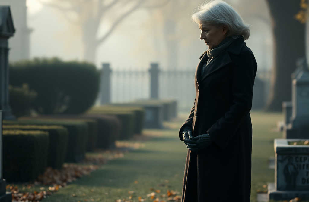 On the anniversary of his passing, she ventured to his grave aloneno attendants, no fuss. Just the chill of the churchyard and the weight in her chest.