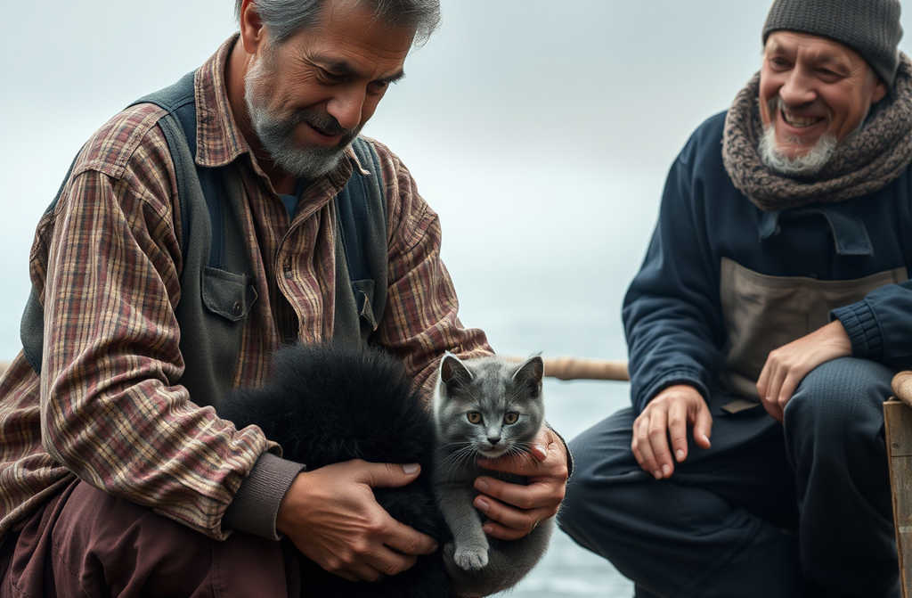I chased after him, cursing the soggy ground and swearing I’d fling the whole lot into the mud. He darted ahead, I scrambled after, hands flailing, until he veered left and vanished into the hedgerows. I pushed aside the branches and saw Grey pressed against a tiny black kitten, both drenched, the kitten whimpering. Grey gave me a guilty look and meowed.