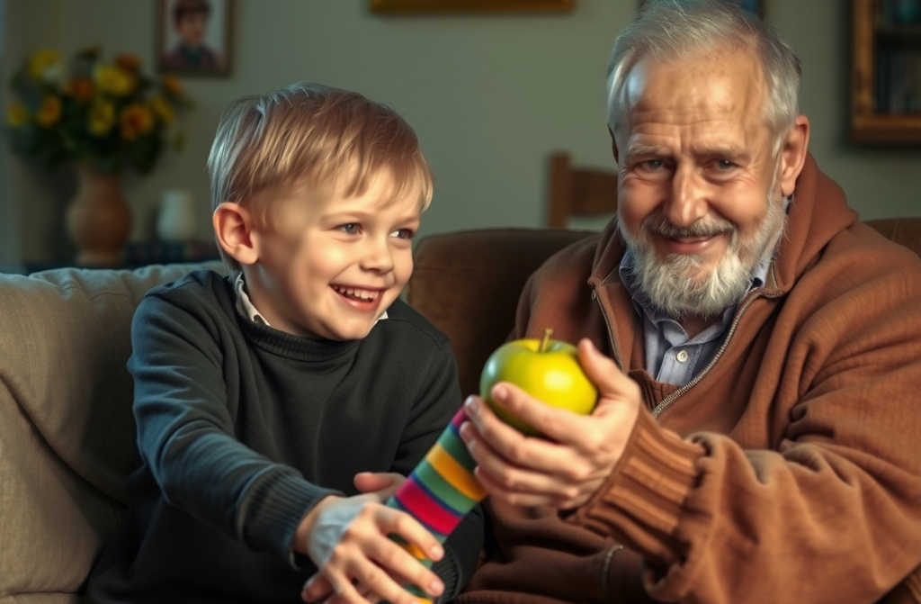 As Oliver grew older, earned his degree, and settled into a good job, he never forgot his grandfather. He stayed living with him, even as he built a family of his own. On his latest birthday, Oliver decided to gift his grandfather a sock stitched with a bright green apple. His grandfathers delight was unmistakable; he declared that now, each day, a magical apple would appear in the sock. The quiet magic between Oliver and his grandfather enduredwoven through with gratitude, love, and the gentle wonder of their shared world.