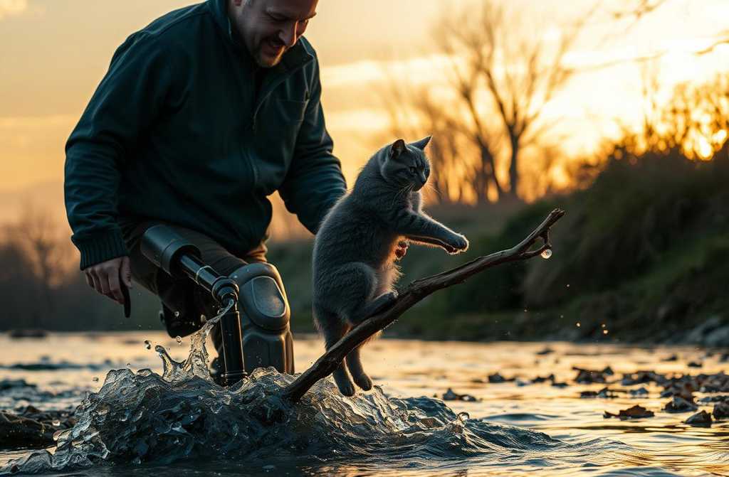 He removed the prosthetic, set it beside him, and squinted as a fallen tree drifted slowly downstreamwould it sink or not? Halfway, it caught on a sandbar. *”Stuck,”* Michael muttered. In ten minutes, when the flood came, it would be torn loose. But then he saw something strangea small creature scrambling in the branches. Leaning closer, he recognised ita cat. Grey, sodden, trembling, desperately clawing its way higher. Now it perched on the topmost branch, twenty metres from shore, clinging with needle-sharp claws.