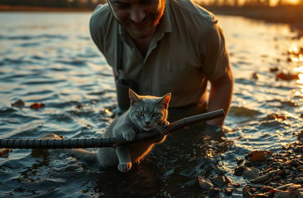 He removed his prosthetic, set it beside him, and squinted as a fallen tree drifted slowly downstreamwould it sink or not? Midway, it snagged on a shoal. *”Stuck fast,”* William muttered. In ten minutes, when the flood came, it would be swept away. But then something odd caught his eyeamong the branches, a tiny creature struggled. Leaning closer, he saw it: a cat. Grey, drenched, trembling, desperately clinging to the topmost branch, twenty yards from shore, claws dug deep into the wood.