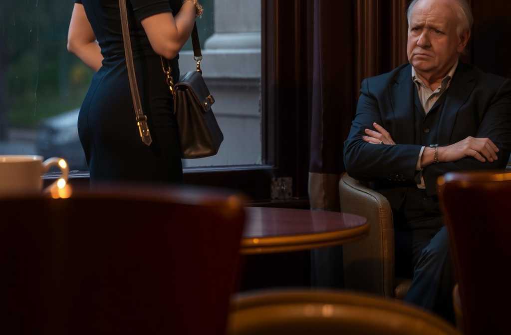 They agree to meet at a small, cosy café in central London, softly lit, filled with the scent of cinnamon and pastries. Caroline arrives on timecomposed, confident, and anticipating an enjoyable evening. She looks impeccable.