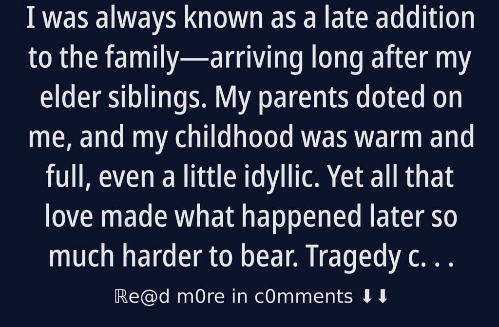 I was always known as a late addition to the familyarriving long after my elder siblings. My parents doted on me, and my childhood was warm and full, even a little idyllic. Yet all that love made what happened later so much harder to bear. Tragedy came knocking when Mum died just before I turned twenty, and not long after that, Dad passed away as well. I was stuck doing my national service, and couldnt be there for either funeral. Their absence lingered with me, their memories all I had left.