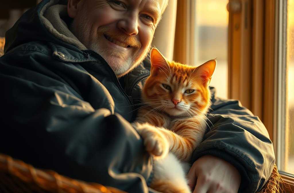 The ginger cat rubbed against his hand and purred contentedly, as if to say, *”Alls well. Im with you now. For good.”*