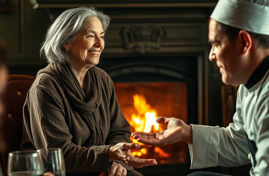 Patrons watched as the chef guided her to *The Whitmore Corner*—a snug nook by the fireplace, usually reserved for his dearest guests. The murmur of conversation resumed, but the air had shifted.