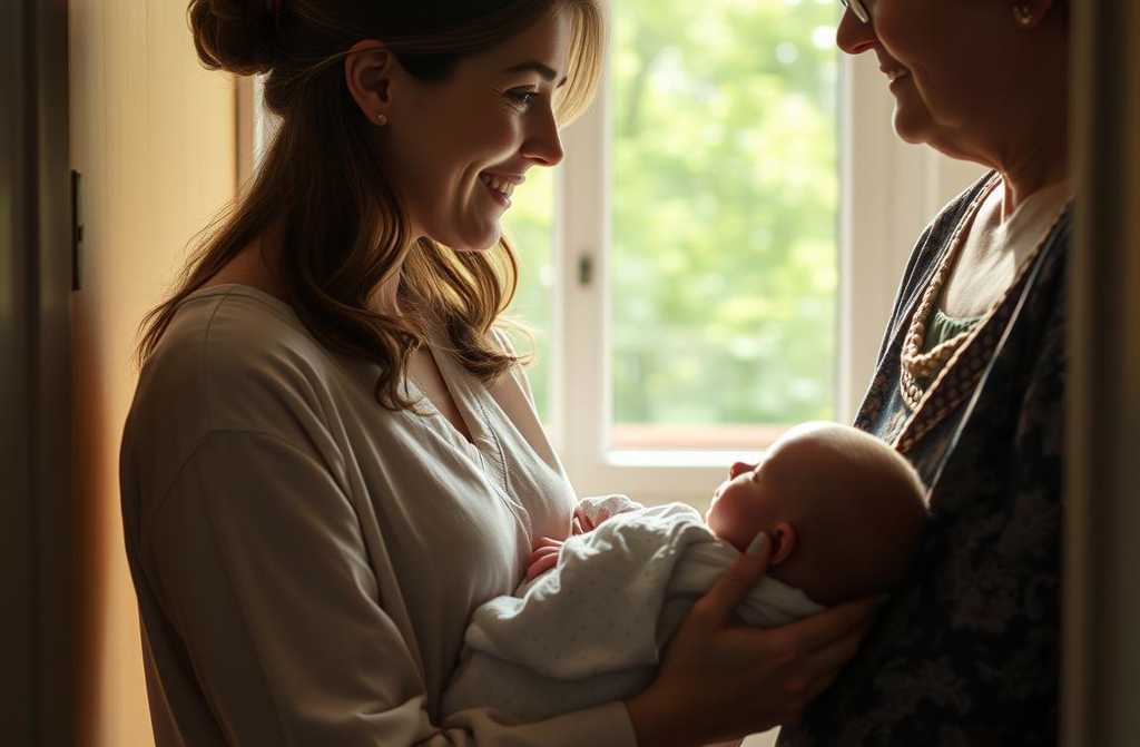 When Imogen emerges, radiant with the newborn, everyone gasps she seems to glow. A gentle flush, soft waves of hair, eyes full of love. Even the nurses smile warmly.