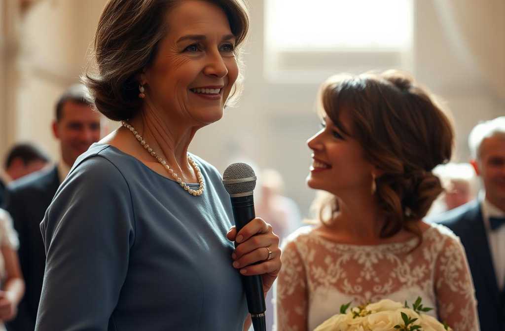 At the wedding the grooms son called his mother a trophy wife and a beggar, then told her to leave. She seized the microphone and started speaking