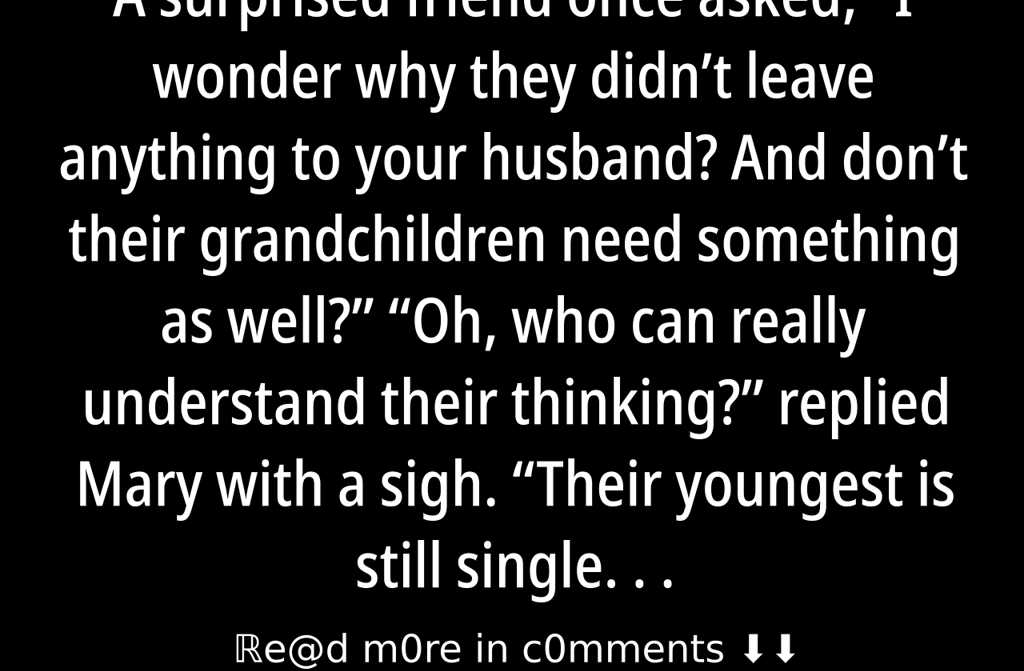 A surprised friend once asked, I wonder why they didnt leave anything to your husband? And dont their grandchildren need something as well?