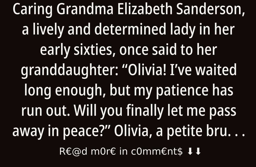 Olivia! Ive waited long enough, but my patience has run out. Will you finally let me pass away in peace?