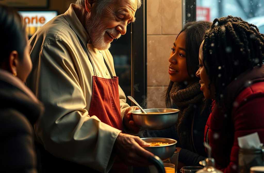 Word spread about Arthur. His neighbours called him the soup man. But few knew his story. Before retiring, hed worked in city restaurants, cooking for demanding customers, serving tables full of rushed meals and polite smiles. Once, when he was at his lowest, someone had given him soupnot just food, but kindness, asking his name and listening when he answered. Arthur never forgot that feeling. So he decided to pass it on, quietly, day after day.