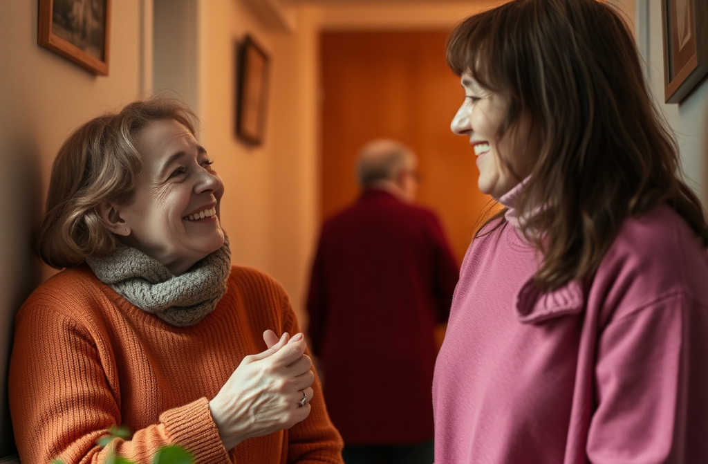 A soft knock came at the door. When she opened it, Mrs. Smith stood there, cheeks rosy, eyes sparkling, a freshly baked cake in hand. We just wanted to say thank you. For being such wonderful neighbours. Youve brought something special to this floor.