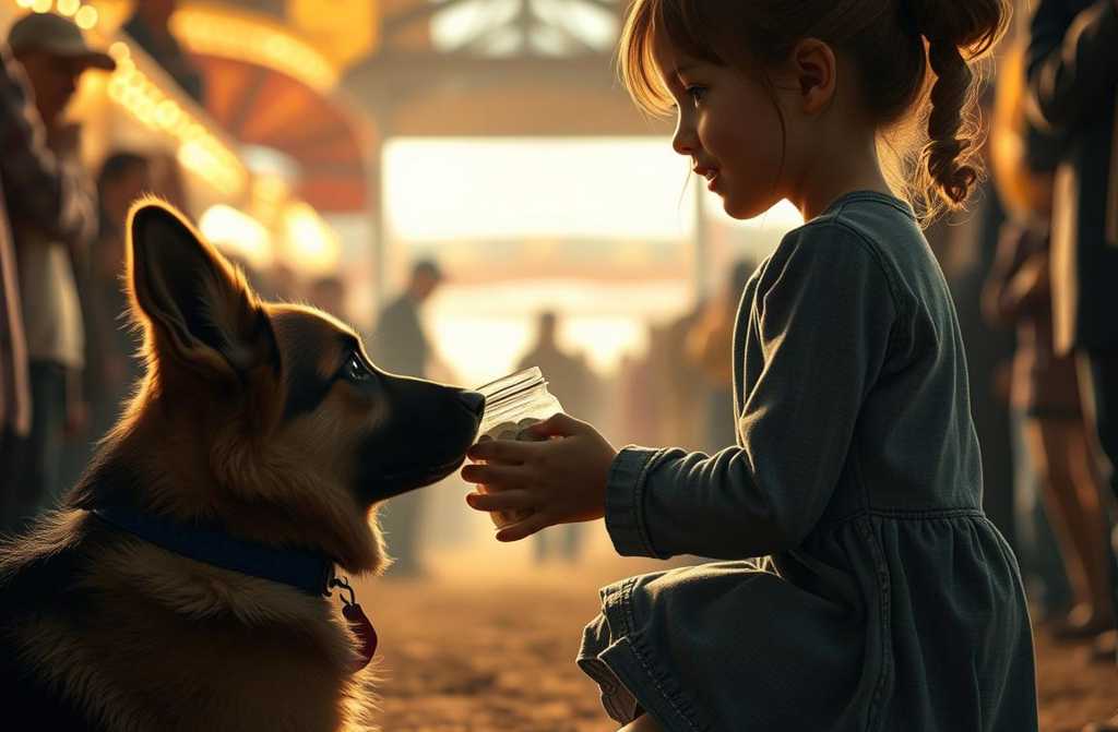In the silence, Lily realized: she wasnt just bidding for Max. She was bidding for the last piece of her mother she could hold onto, the one thing she could pour all her lost words into. Outside, the sun still shone, the fair roared on. But inside, the world had narrowed to a little girl, a jar of coins, and an old dog, waiting to belong somewhere.