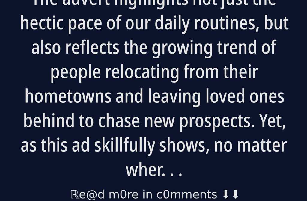 The advert highlights not just the hectic pace of our daily routines, but also reflects the growing trend of people relocating from their hometowns and leaving loved ones behind to chase new prospects. Yet, as this ad skillfully shows, no matter where life takes us or how busy we become, there is nothing quite as valuable as spending time with our nearest and dearest. Truly moving.