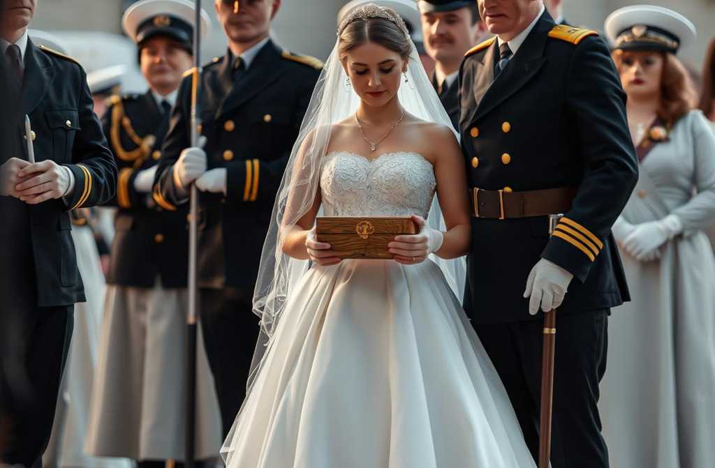Then, one man stepped forward. His uniform was slightly differentclearly an officer. In his hands was a small, polished wooden box. He smiled warmly at Emily and spoke for all to hear.