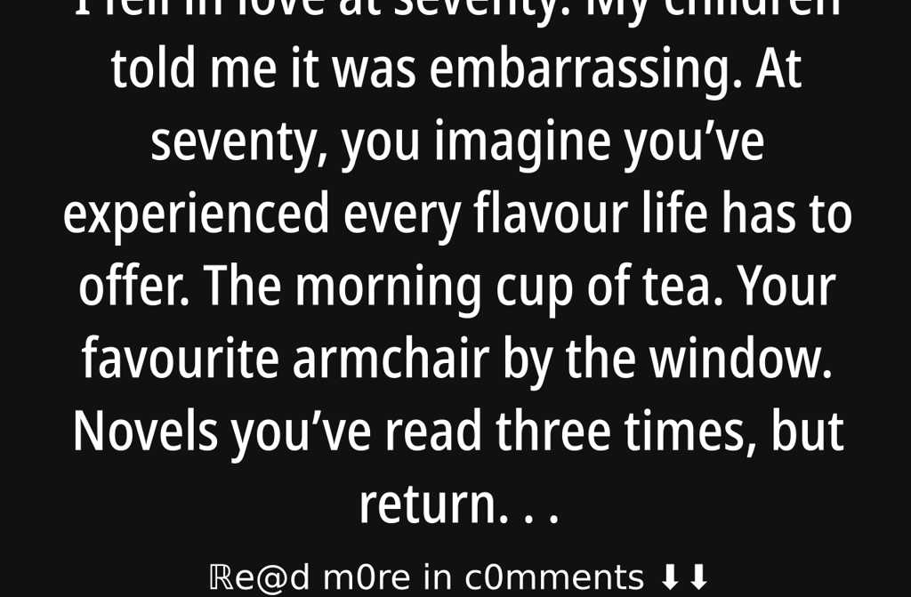 At seventy, you imagine youve experienced every flavour life has to offer. The morning cup of tea. Your favourite armchair by the window. Novels youve read three times, but return to because your memory isnt what it used to be. The silence that fills the house after forty years of marriage, when your partner is gone.