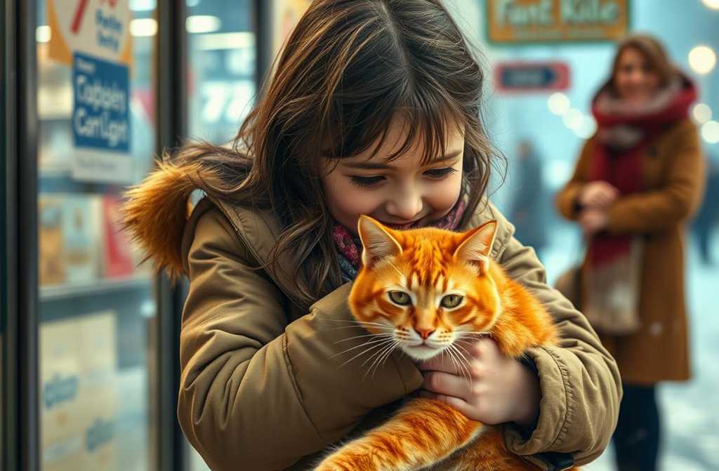 Shoppers bustled in and out, doors swinging, while a ginger tomcat lounged by the entrance like a wise old philosopher, eyes half-closed, utterly unbotheredexcept for the occasional paw shuffle against the cold. Emily crouched beside him, then waved Charlotte off toward the shop.