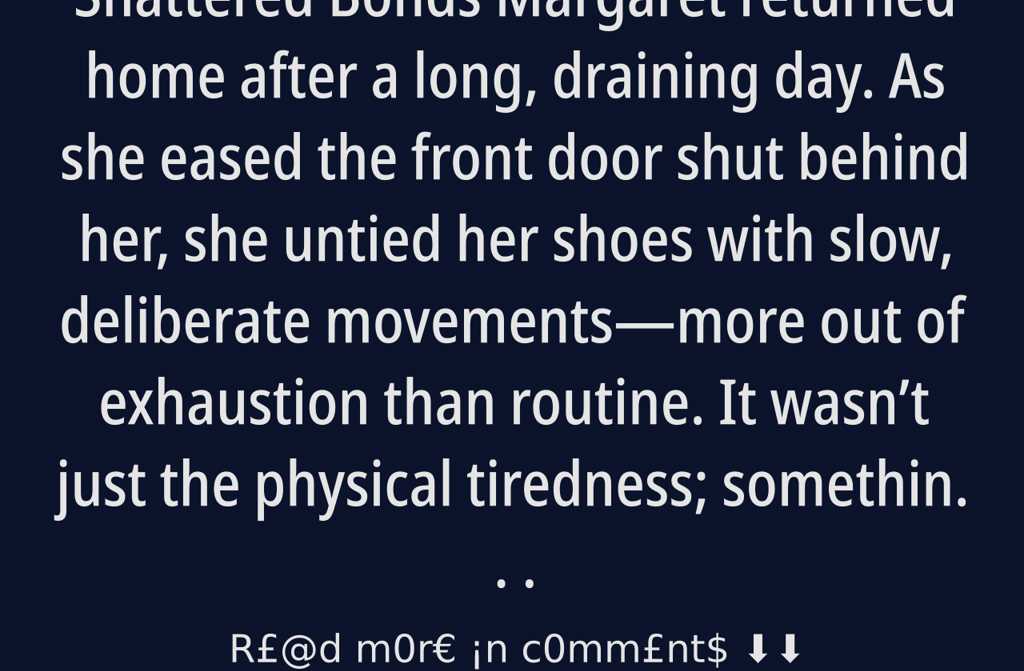 Margaret returned home after a long, draining day. As she eased the front door shut behind her, she untied her shoes with slow, deliberate movementsmore out of exhaustion than routine. It wasnt just the physical tiredness; something far deeper weighed her down. The hallway was unusually quiet, the only sound being the gentle murmur of the television in the kitchen. Margaret paused for a moment, almost collecting herself, before stepping further into the comfort of her home. Shaking off the outside world and embracing her sanctuary felt harder than usual tonight.