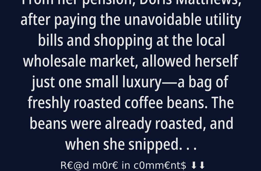 Her reflections were cut short by a short beep from her mobile. Looking at the screen, Doris saw her state pension had come through. Perfect timing! She could pop out to buy coffeea new packet was exactly what she needed, as shed brewed the last cup only that morning. Tapping her stick against the pavement, steering around autumn puddles, she made her way towards the shop.