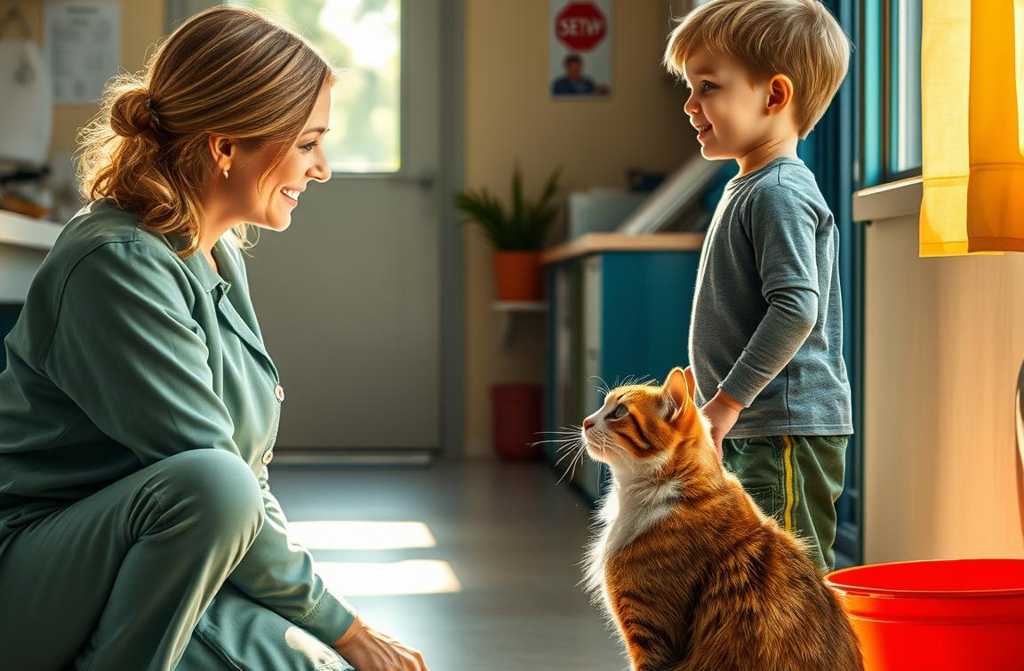 A few minutes later I entered a bright, spacious consulting room where a man stood holding a cat. A small boy was beside him, gently stroking the frightened animal.