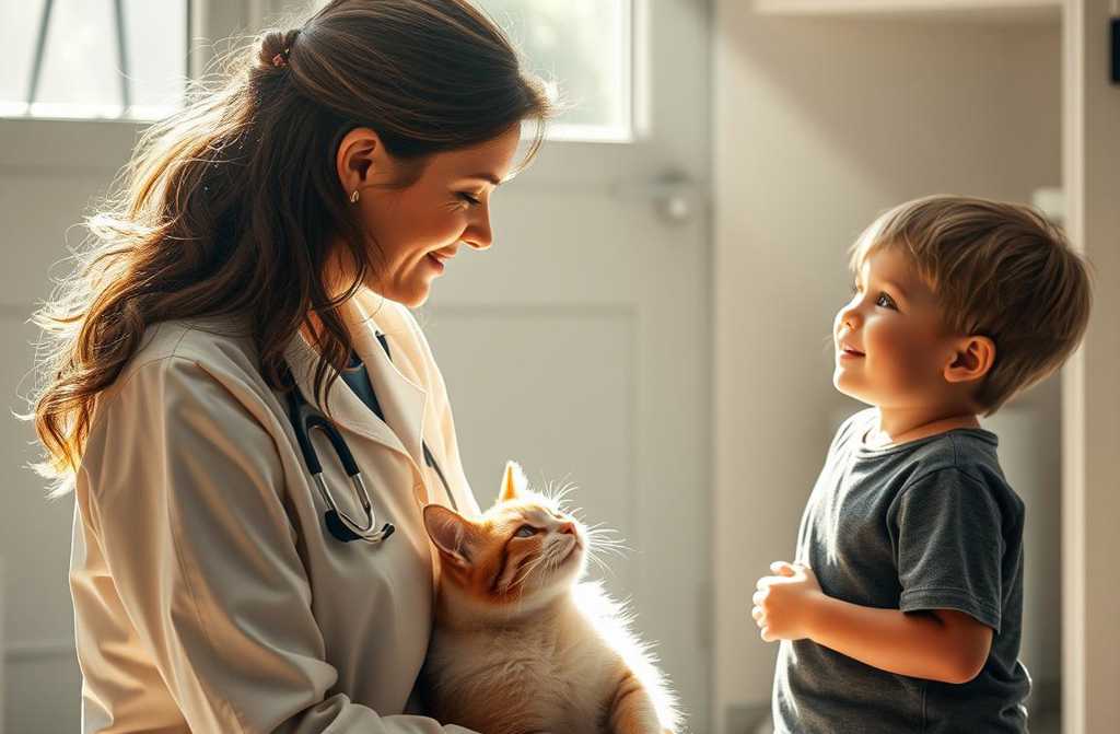 In a bright consulting room, a man cradled a cat while a small boy stroked the frightened animal.