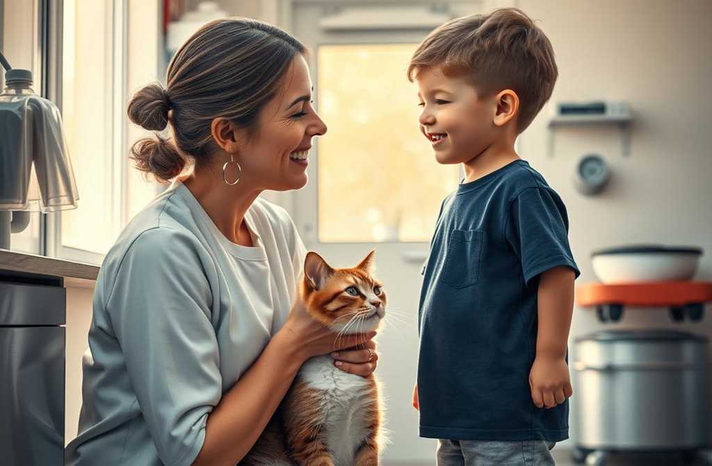 A few minutes later she entered a bright examination room where a man held a cat, a young boy petted the frightened animal.