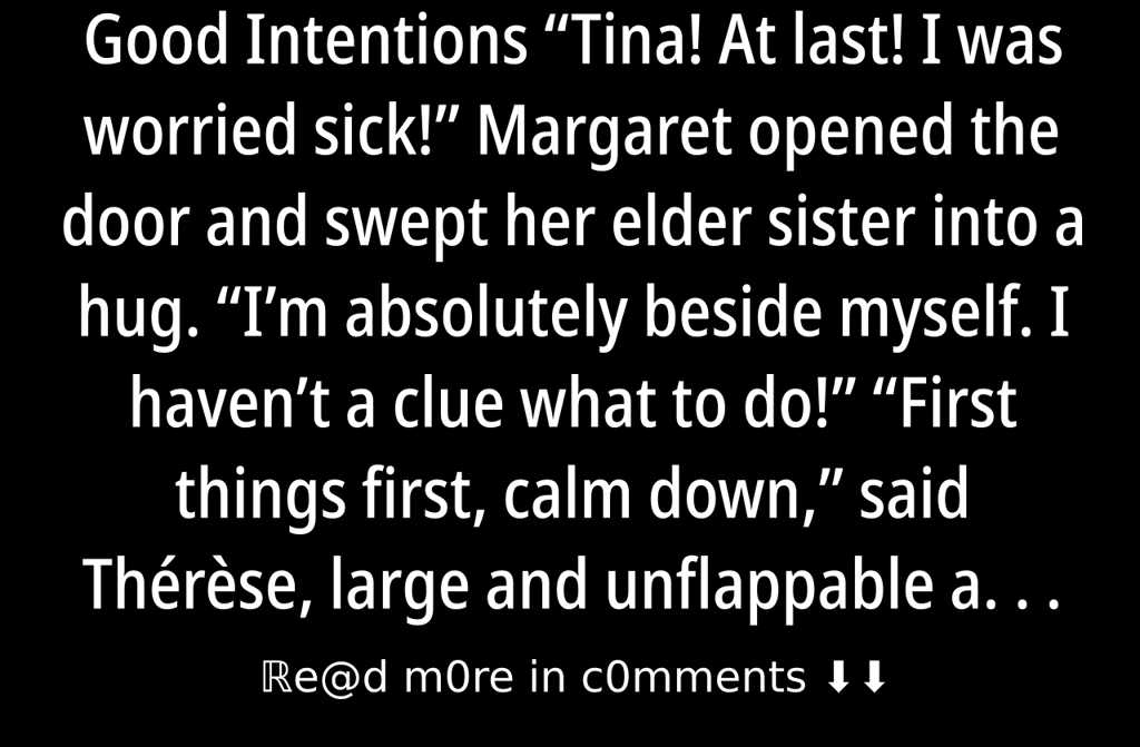 Tina! At last! I was worried sick! Margaret opened the door and swept her elder sister into a hug. Im absolutely beside myself. I havent a clue what to do!