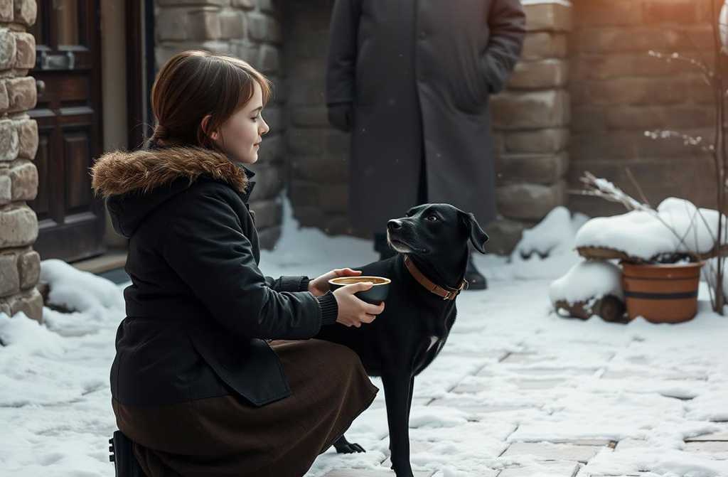 The dog crept forward, lapped the bowl clean, then settled, head on its paws, watching her with grateful eyes.