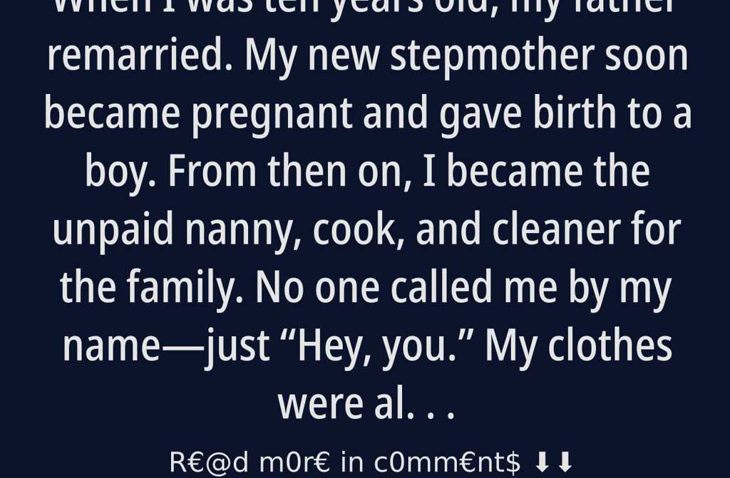 When I was ten years old, my father remarried. My new stepmother soon became pregnant and gave birth to a boy. From then on, I became the unpaid nanny, cook, and cleaner for the family.