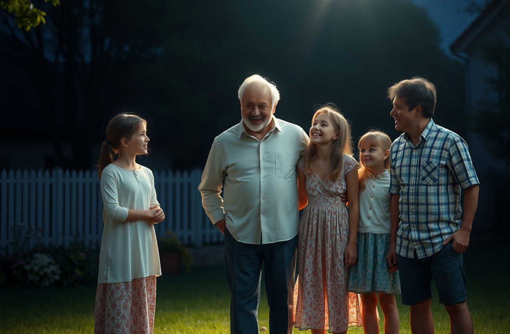 What on earth is that? I muttered, just then several floodlights snapped on, bathing the meadow in bright beams. From behind the house emerged James, Edward, their wives and grandchildren, a handful of relatives, and Elizabeth accompanied by a tall gentleman in thick glasses. Everyone held balloons, squeaked into noisemakers, and pressed the buttons of airhorns with reckless enthusiasm. They all shouted, waved their arms, and swarmed around me: