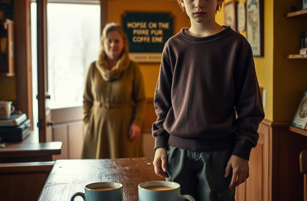 Margaret noticed his trembling hands and the girls fearful hunch. Without a word, she poured two mugs of hot cocoa and set them on the counter.