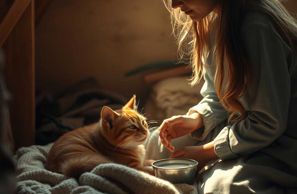 Seeing he would not flee, the girl placed more pieces beside the dish. Eat, she said gently, you look famished. She then fetched a bowl and poured a splash of milk. Drink, you need it, lest the hunger do you ill.