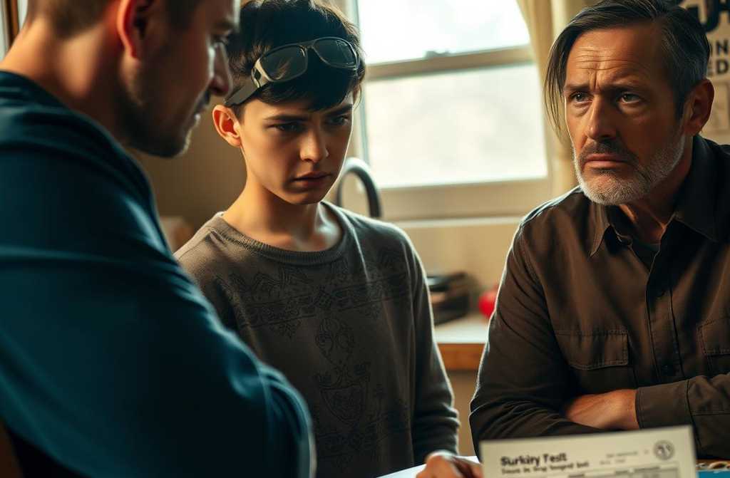 Tom sat silently, avoiding his fathers gaze. His face said it allhed chosen his mums side. Clenching his fists, he stayed quiet.