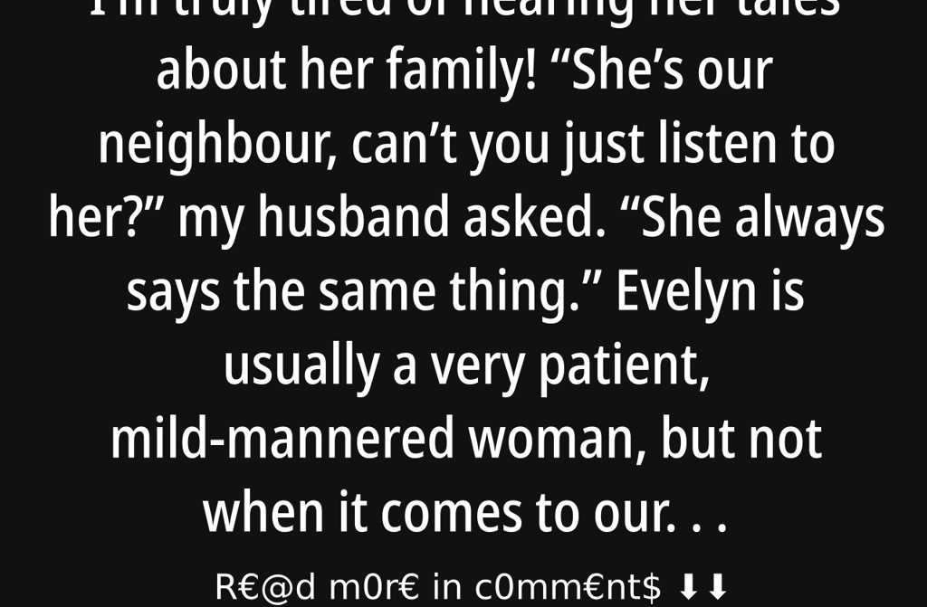 Shes our neighbour, cant you just listen to her? my husband asked.
