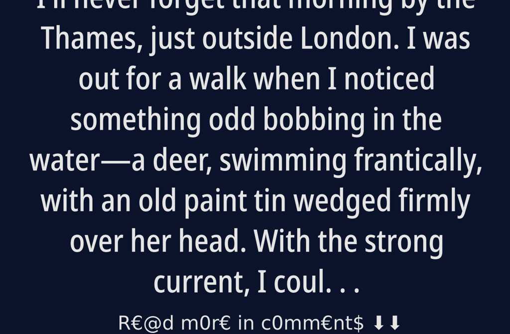 Ill never forget that morning by the Thames, just outside London. I was out for a walk when I noticed something odd bobbing in the watera deer, swimming frantically, with an old paint tin wedged firmly over her head. With the strong current, I could see that she was struggling, and the chance of her making it ashore seemed rather slim.