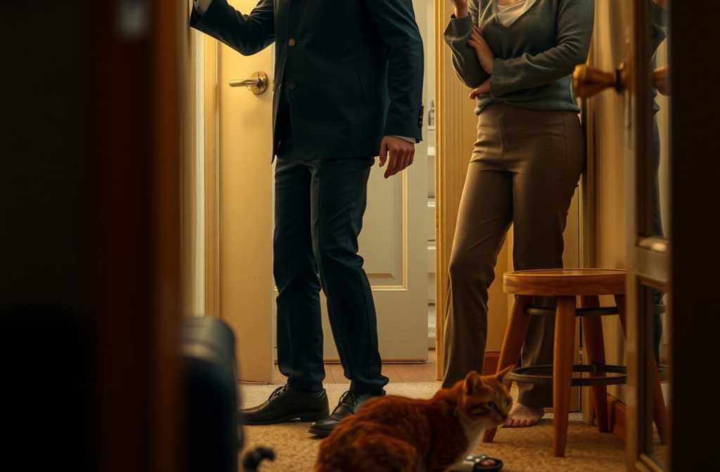 A heavy silence fills the hallway. He storms out, slamming the door behind him. His jacket no longer hangs on the peg, the sharp tang of his aftershave has vanished from the air, and a vacant space lingers on the shoe rack, as if a piece of someone else’s life has been torn away.
