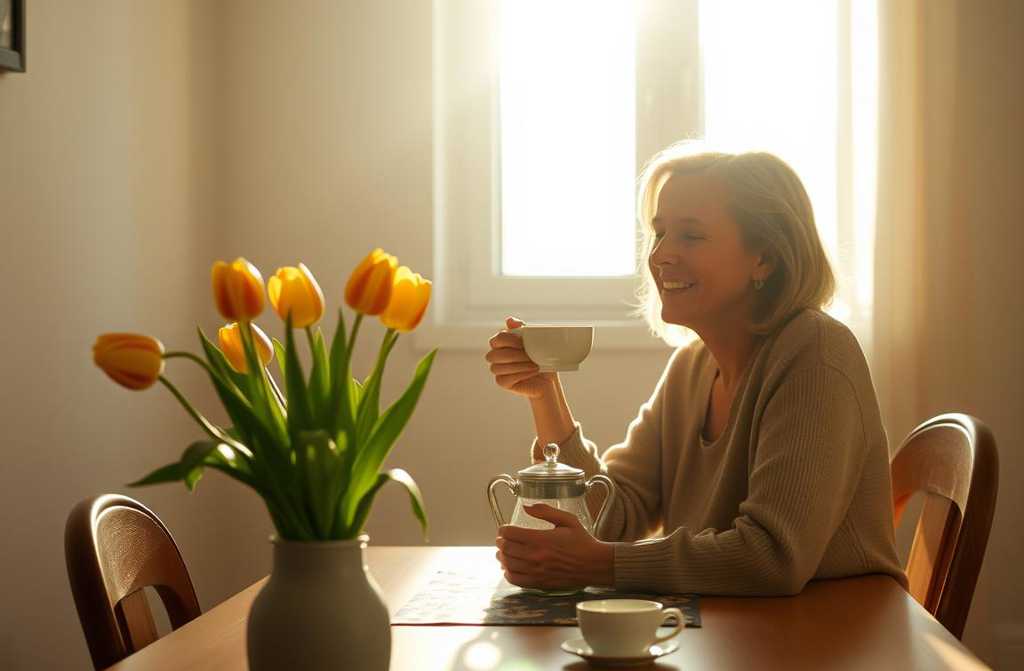 I sat at the kitchen table with a cup of tea and thought perhaps this was the true beginning. Not a grand spectacle, not a filmlike climax. A beginning made of simple gestures: fresh tulips bought for myself, an afternoon stroll for no reason, the bravery to say, I dont know what comes next, but I will choose it.