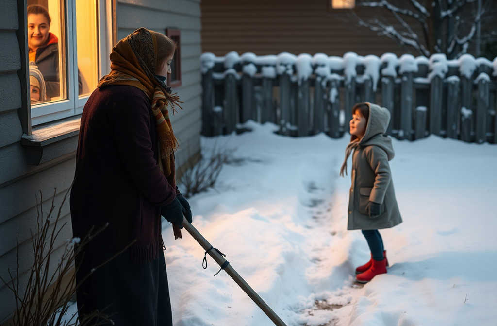 She turned, gave her usual wave with the spade, What, you want to wade through drifts till spring? Put the kettle on, will you?