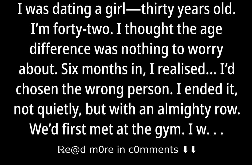 I was dating a girlthirty years old. Im forty-two. I thought the age difference was nothing to worry about. Six months in, I realised… Id chosen the wrong person. I ended it, not quietly, but with an almighty row.