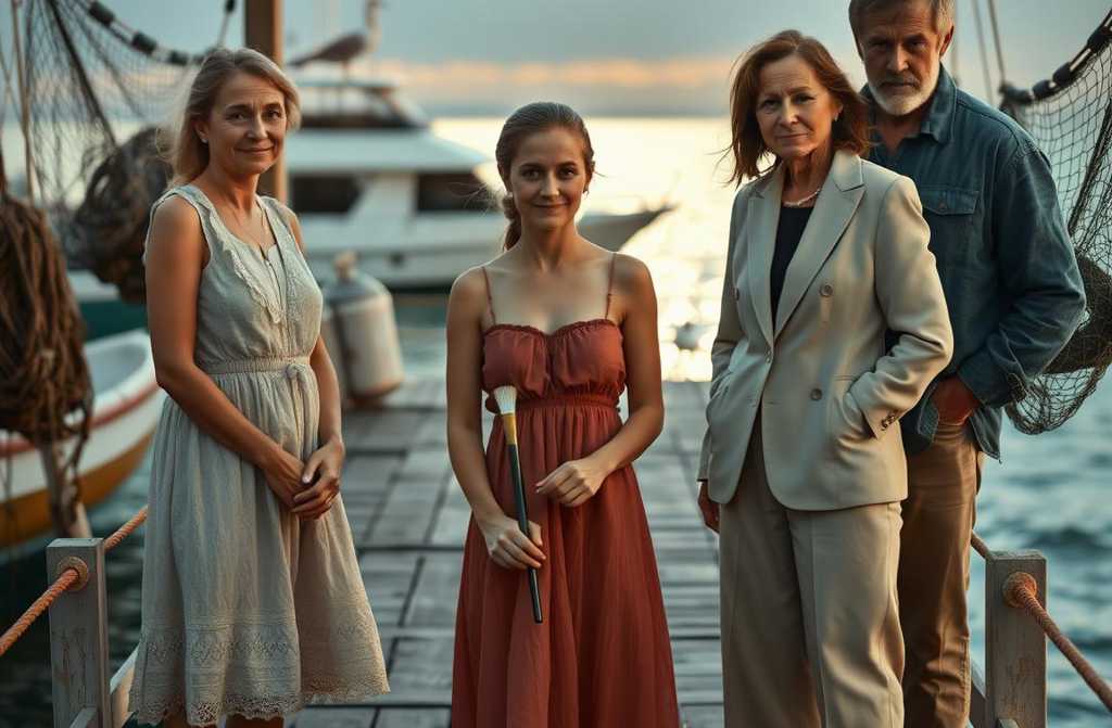 A year later, Emily painted a new piece: the old pier, two boatsone weathered, one gleamingand three women, hand in hand.