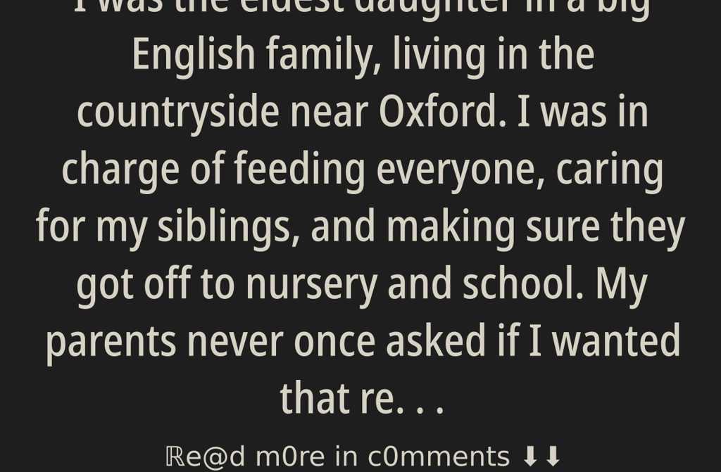 I was the eldest daughter in a big English family, living in the countryside near Oxford. I was in charge of feeding everyone, caring for my siblings, and making sure they got off to nursery and school. My parents never once asked if I wanted that responsibilityit was simply handed to me, as if it were my fate from birth.
