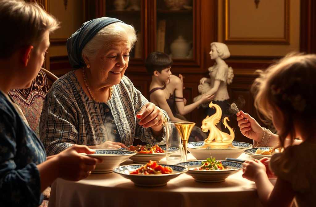 I once gathered all my kin for dinner, setting before each a fine but empty plate adorned with delicate patterns. Only my granddaughter received a full meal.
